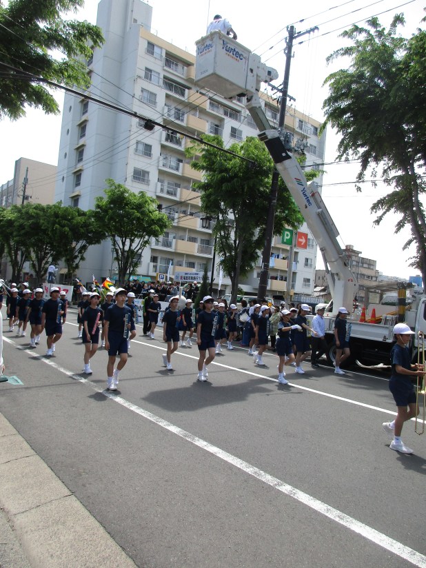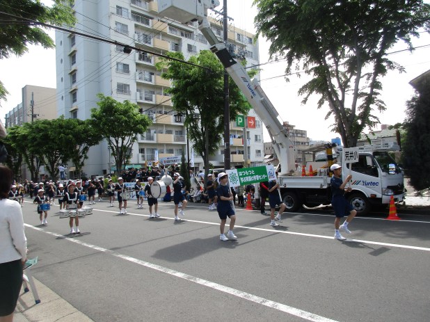 It’s a parade!  Every spring, the fourth, fifth, and sixth grade elementary school students of Fukushima City march and perform.