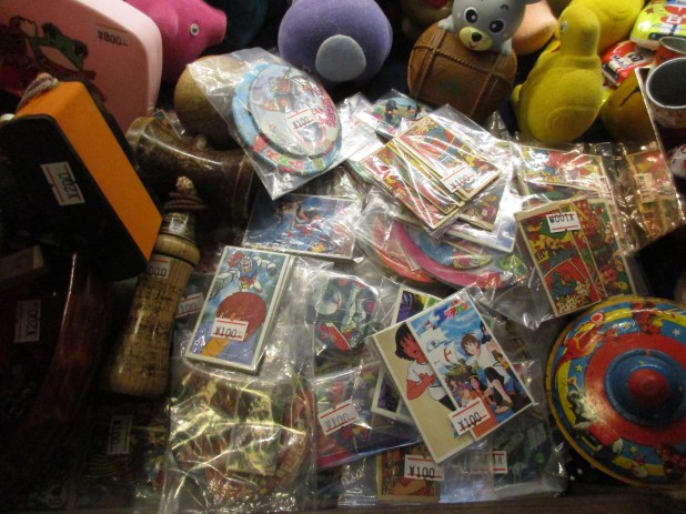 As you can see, there are pictures on the cards. While researching, I spent a lot of time looking at these in library books, and also ordered some off the internet. (I have never seen them sold here in Fukushima City.) The pictures can be any theme imaginable–whatever would have appealed to kids a hundred or so years ago. Kind of like today’s Pokemon cards, and so on.