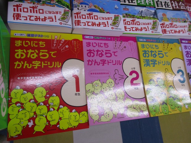 This was my inspiration for today’s post!  A new–and popular–set of poop-themed workbooks. These teach kanji.