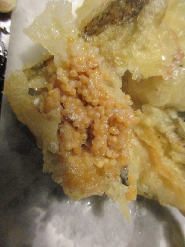 Husband knows what I am thinking (he somehow always knows what I am thinking.) He ate the eggs. He says it’s the best part! (Most tempura fish are not pregnant, by the way. It’s like finding a pearl in your oyster.)