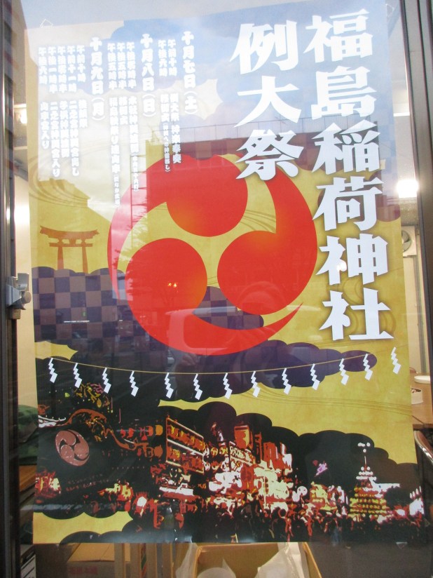 The above photo shows the current year’s poster for the Inarij Jinja Festival, held every autumn in downtown Fukushima City. It has the dates written in Japanese.
