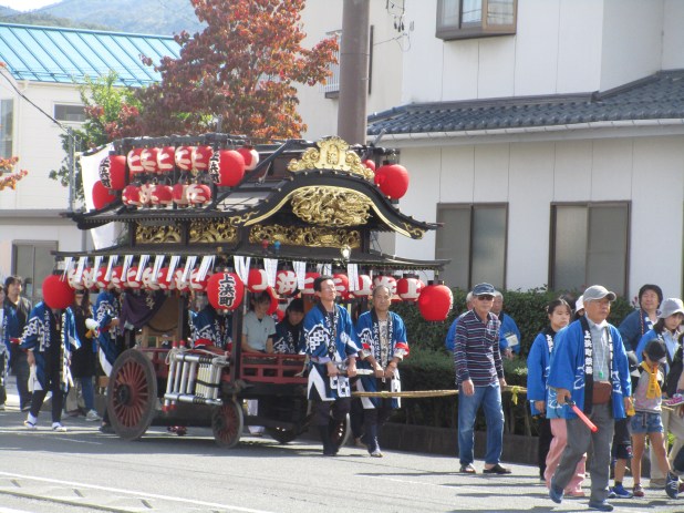 The dashi was pulled four times over the course of three days. (Saturday, Sunday, Monday) My son pulled the dashi twice.   (He had a fever on Sunday and couldn’t pull it.)