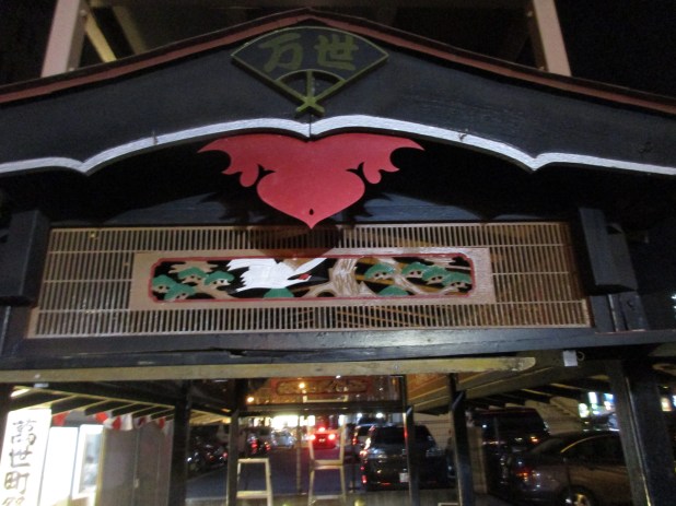 This is really hard to see in the dark, but it’s a fake samurai, holding a sword of yakitori meat.  Very interesting!