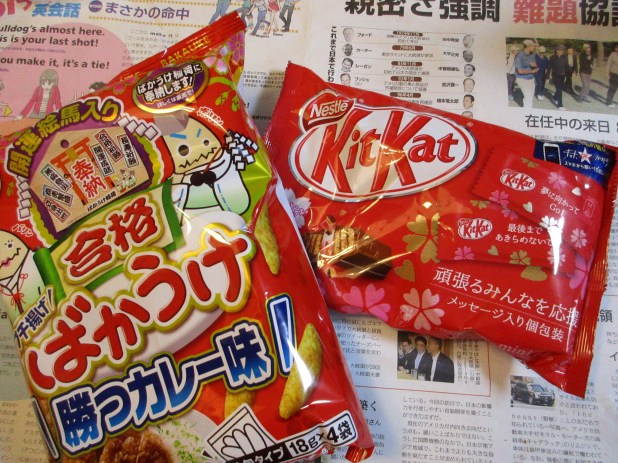 All of Japan is rooting for the students who are studying for their high school (or univesity) entrance exams. Even the snack companies. Er, ESPECIALLY the snack companies.