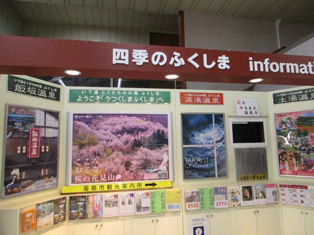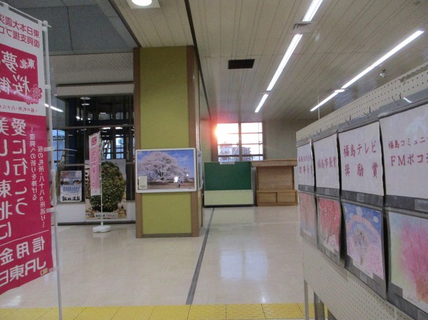 I came upon this little exhibit upon departing the bullet train. Our train station here in Fukushima City has two sections–a not bad but not elegant regular part (with local trains) and then a much posher, newer, cleaner bullet train section. (You need a bullet train ticket to enter the bullet train part of the station, so it is usually pretty devoid of crowds.) And anyway, this exhibit was in the bullet train part of the station.