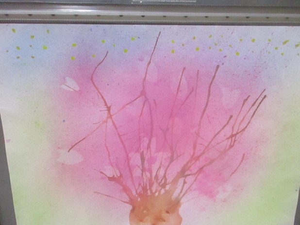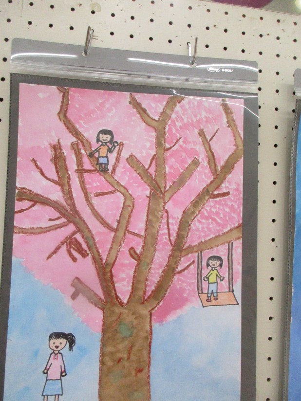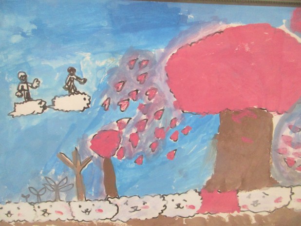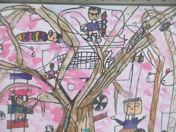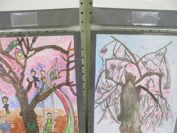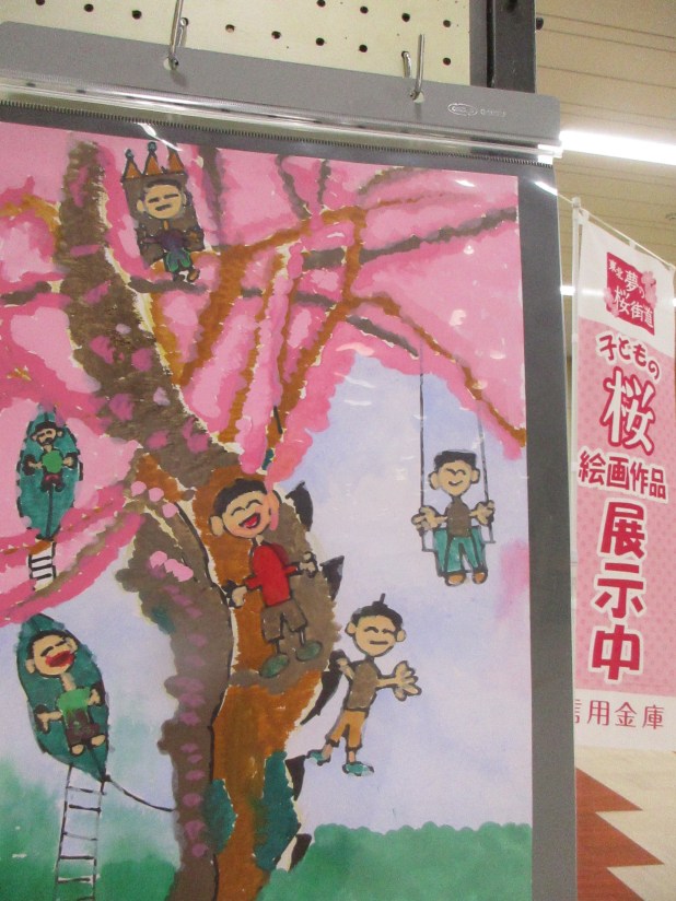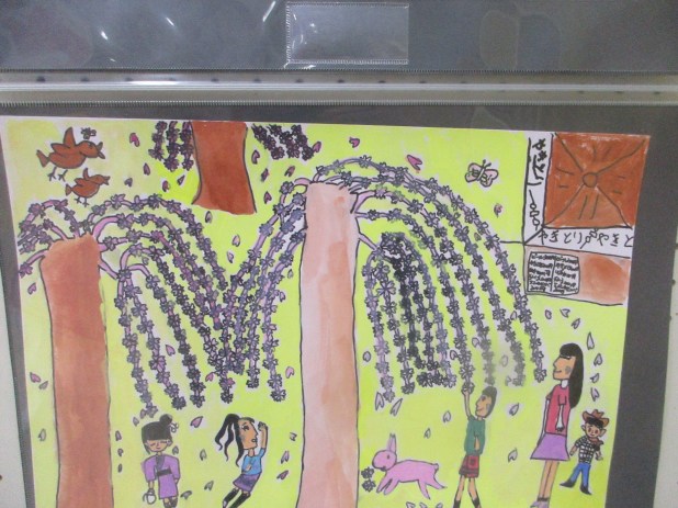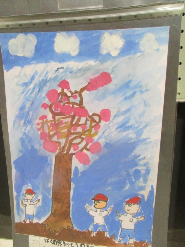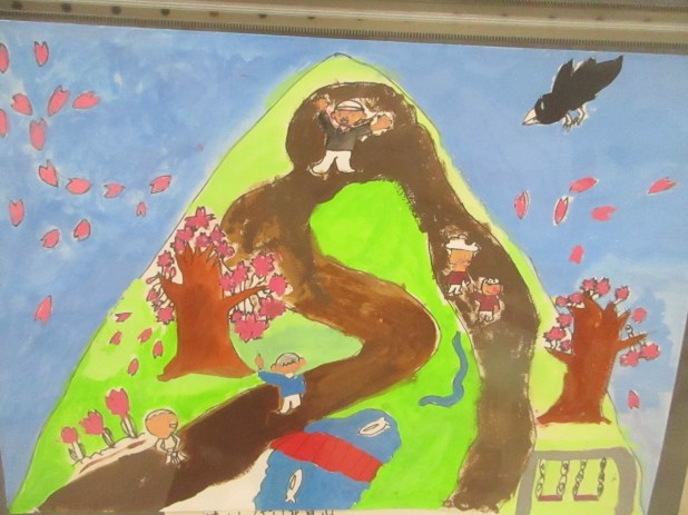 However, when we returned from Tokyo (at the end of March) the cherry blossoms were about to open in Fukushima. And here are some painting by Fukushima kids…… (Photos taken with permission of staff.)