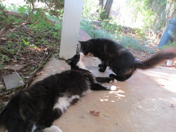 Yep. He’s got an attitude. Both are very sweet, though, and will purr if you pet them. They don’t bite or scratch.