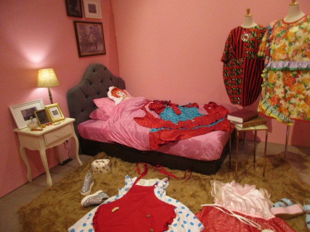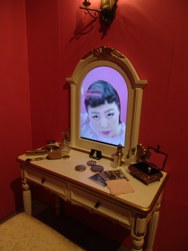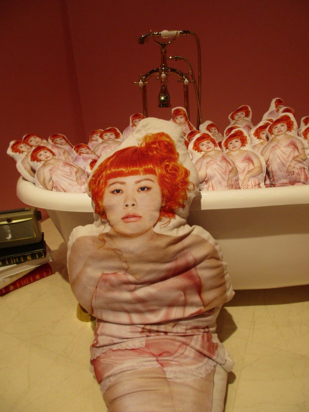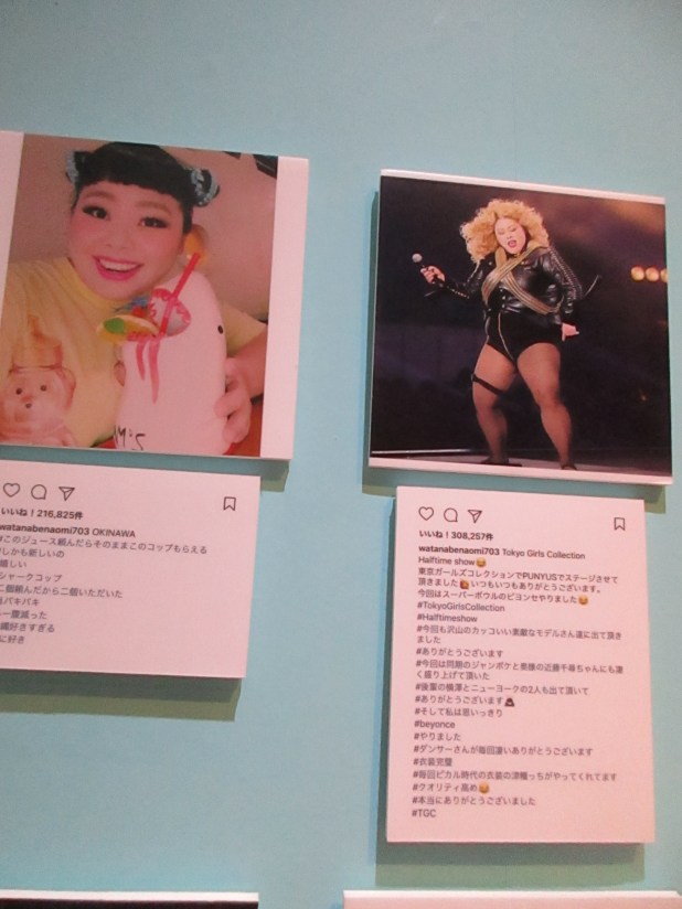 Me in one room of the exhibit. I think the piles of food is supposed to be Naomi poking fun at her own weight. She’s overweight–and she owns it! My opinion is this is refreshingly wonderful in Japan, where women are under a lot of pressure to be stick thin.