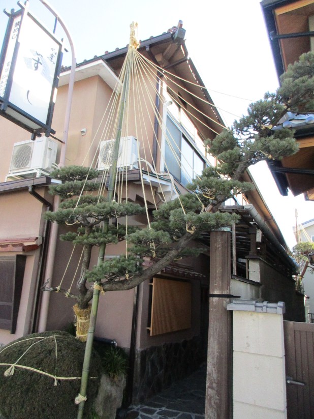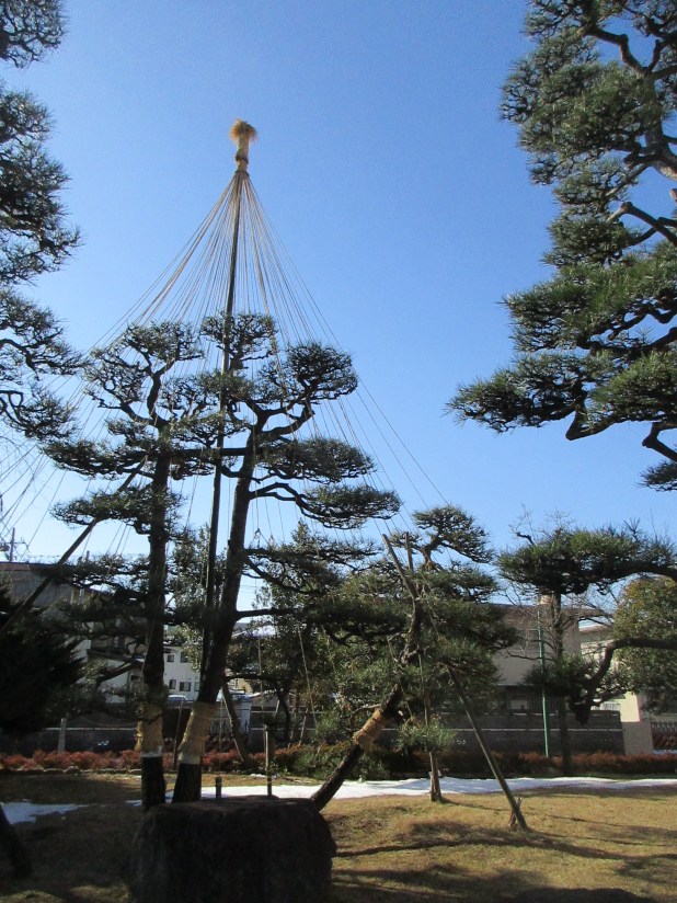This, I believe, is a home. I guess the bamboo pole helps the tree keep its shape in case the snow should be so heavy as to weigh down the branches. (And just a few short years ago–2015? we had a HUGE dump of heavy snow that was destroying the roofs of bicycles sheds, carports and so on.) These tree protections can be seen all over Tohoku (northern part of Honshu) in winter and I think they are really beautiful.