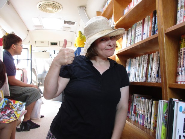 This bus was neato! It’s a mobile library that travels through the rural areas of Fukushima Prefecture so that people who live in the smallest towns can check out books.